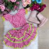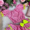 TECIDO OXSFORD 100% POLIESTERRENDA E FITA 100% POLIESTERCAIPIRAJUNINOJUNINAJULINASÃO JOÃOFESTAConfeccionado em tecido misto possui forro em poliéster e algodão para não incomodar a criança e proporcionando um caimento incrível e sofisticado, possui gola redonda, comprimento médio, mangas curtas, possui elástico na cintura para melhor ajuste e blusinha com elástico nas costas para ajustar a parte posterior do conjunto completando o look dos sonhos! * Medidas podem variar em até 4cm * Caso queira o conjunto mais armado, recomendamos o uso do saiote ou anágua de armação, disponível no nosso site na categoria acessórios. * Tiara vendida separadamente, disponível em nosso site na categoria acessórios. * Calçados vendido separadamente, disponível em nosso site na categoria calçados. * LEMBRANDO QUE PODERA HAVER VARIAÇÃO DE TONALIDADE DO PRODUTO DEPENDENDO DA TELA DO SEU DISPOSITIVO