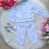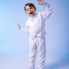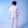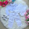 Conjunto composto por: Camisa social na cor branca manga Longa, gravata borboleta branca, cinto, Calça na cor branca e colete na cor branca.