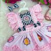 Confeccionado em tecido misto possui forro em poliéster e algodão para não incomodar a criança e proporcionando um caimento incrível e sofisticado, possui gola redonda, comprimento médio, mangas curtas, possui elástico nas costas para melhor ajuste, acabamento com lindo laço na parte posterior do vestido completa o look dos sonhos!