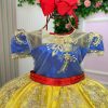 Encante-se com o Vestido Temático Princesa Branca de Neve Luxo Um modelo sofisticado e cheio de detalhes que trazem a magia dos contos de fadas para a sua princesa! Parte superior em azul royal com renda bordadas em dourados delicados e transparência nos ombros, trazendo charme e elegância. Saia amarela rodada com acabamento em renda bordada em dourado, criando um efeito de brilho e movimento encantador. Cinto vermelho com strass, que destaca a cintura e adiciona o toque clássico da Branca de Neve. Ideal para festas temáticas, aniversários, ensaios fotográficos ou para realizar o sonho de viver um dia de princesa. Tecido 100% poliester. Um vestido cheio de magia, pronto para transformar momentos especiais em memórias inesquecíveis. Informações Importantes As medidas podem variar em até 2cm. Recomendamos sempre consultar a tabela de medidas antes da compra para evitar erros. Para um volume extra, indicamos o uso de saiote de armação, vendido separadamente na categoria Acessórios. Tiara e outros acessórios não acompanham o produto, mas estão disponíveis em nosso site. Calçado vendido separadamente, disponível na categoria Calçados As cores do produto podem sofrer variações de tonalidade conforme a configuração da tela do seu dispositivo.