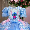 Vestido Junino Tematico Luxo Lilo Stitch Azul Bebe Modelo 2