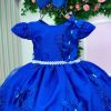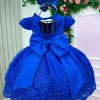 Confeccionado em tecido misto possui forro em poliéster e algodão para não incomodar a criança e proporcionando um caimento incrível e sofisticado, possui gola redonda, comprimento médio, mangas curtas, apliques de Renda e Borboletas, contém, também, elástico nas costas para melhor ajuste, acabamento com lindo laço na parte posterior do vestido completa o look dos sonhos!