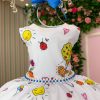 VESTIDO BRANCO COM DESENHOS LAPIS ABC, FORMATURA, ESCOLA, ENSINO, AQUARELA