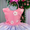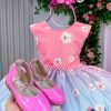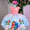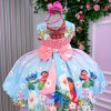Confeccionado em tecido misto possui forro em poliéster e algodão para não incomodar a criança e proporcionando um caimento incrível e sofisticado, possui gola redonda, comprimento médio, mangas curtas, contém, também, elástico nas costas para melhor ajuste, acabamento com lindo laço na parte posterior do vestido completa o look dos sonhos!