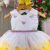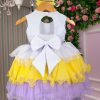 Confeccionado em tecido misto possui forro em poliéster e algodão para não incomodar a criança e proporcionando um caimento incrível e sofisticado, possui gola redonda,comprimento médio, mangas curtas, acabamento com lindo laço na parte posterior do vestido completa o look dos sonhos!