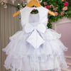 Confeccionado em tecido misto possui forro em poliéster e algodão para não incomodar a criança e proporcionando um caimento incrível e sofisticado, possui gola redonda,comprimento médio, mangas curtas, acabamento com lindo laço na parte posterior do vestido completa o look dos sonhos!
