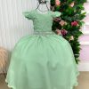 Confeccionado em tecido misto possui forro em poliéster e algodão para não incomodar a criança e proporcionando um caimento incrível e sofisticado, possui gola redonda, comprimento médio, mangas curtas,  contém, também, elástico nas costas para melhor ajuste, acabamento com lindo laço na parte posterior do vestido completa o look dos sonhos!