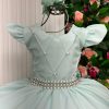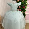 Confeccionado em tecido misto possui forro em poliéster e algodão para não incomodar a criança e proporcionando um caimento incrível e sofisticado, possui gola redonda, comprimento médio, mangas curtas,  contém, também, elástico nas costas para melhor ajuste, acabamento com lindo laço na parte posterior do vestido completa o look dos sonhos!